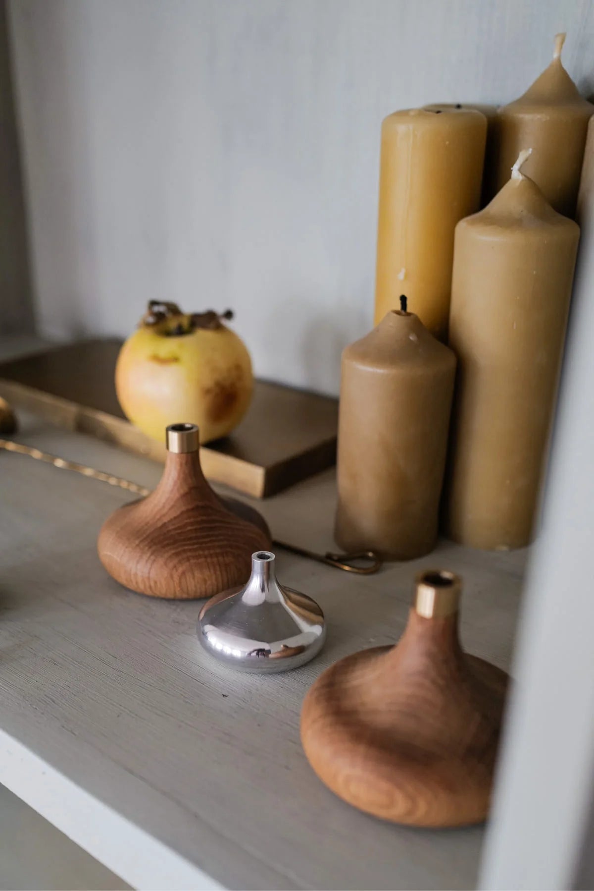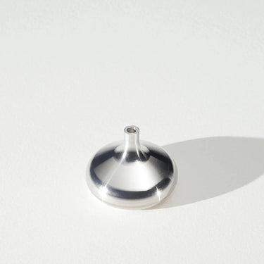 Turned by hand in a small Lithuanian workshop, this solid aluminum candle holder is OVO Things minimalist answer to their classic oak version. Cool to the touch and softly reflective, it offers a quiet contrast to the warmth of beeswax candles and natural table linens.