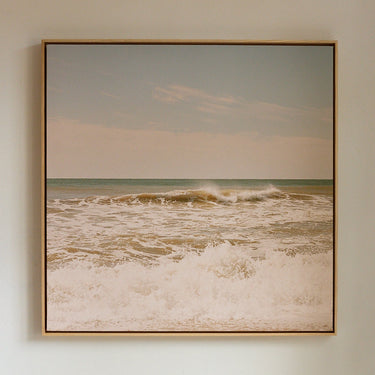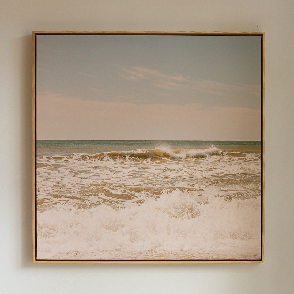 Printed on heavyweight canvas, the texture softens the image just enough to feel painterly, while the slim natural wood frame keeps the silhouette clean and contemporary.