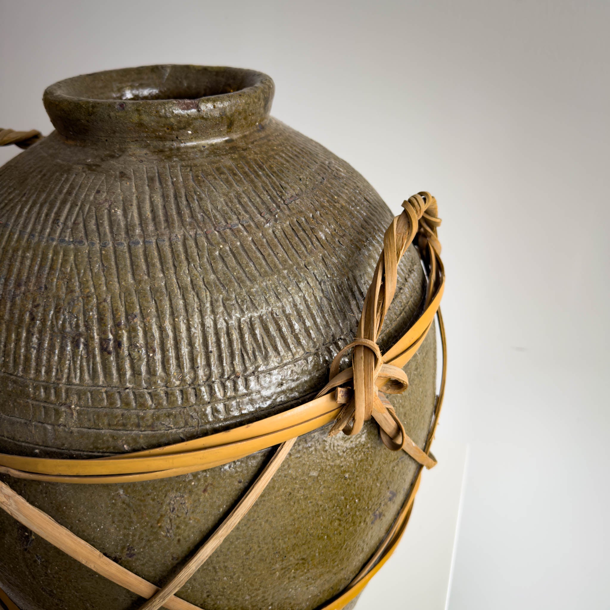 With its rounded shape and narrow neck, this piece was designed to store and ferment rice, essential for creating traditional rice wines and vinegars. Over time, the pot has developed a rich patina, which adds to its historical significance and rustic appeal.