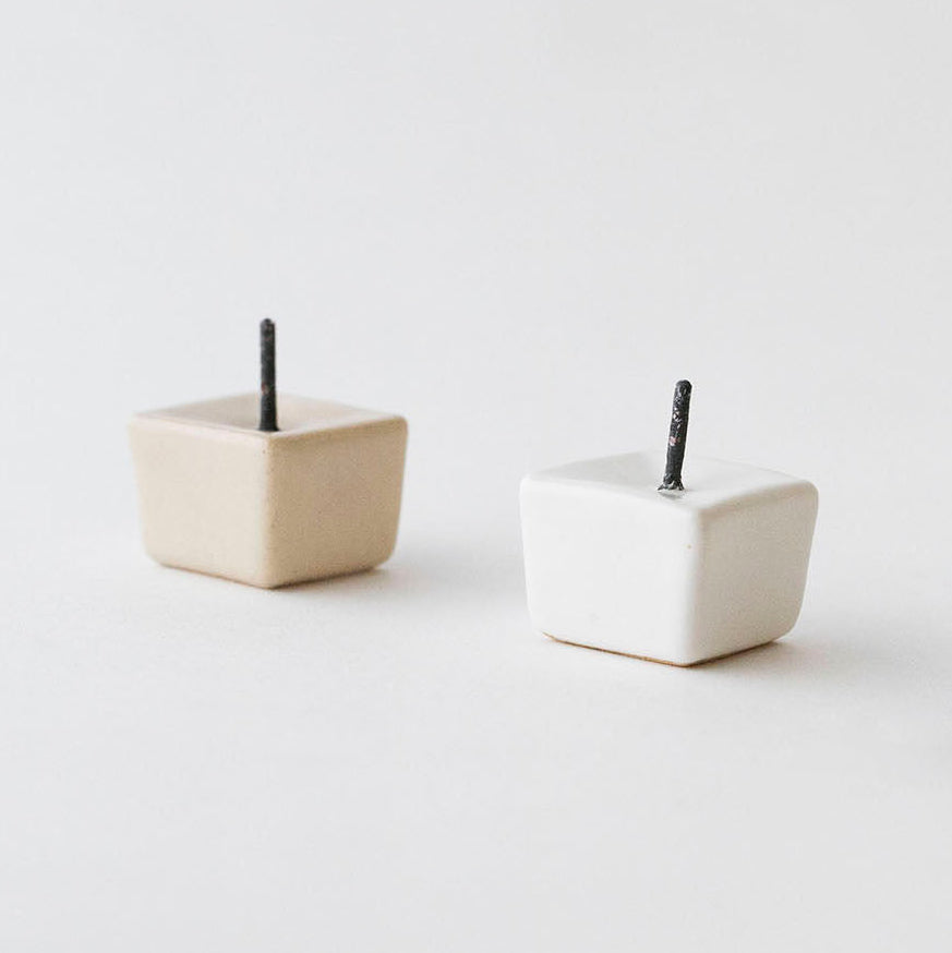A compact, hexagonal candle spike crafted in Japan by Daikō. The base is made of ceramic in a soft beige tone, fitted with a cast iron spike that holds slender Japanese warosoku candles securely in place.