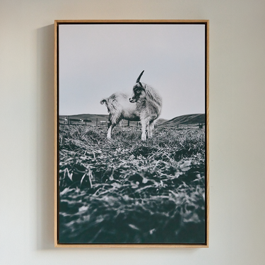 Printed on heavyweight canvas, the texture softens the image just enough to feel painterly, while the slim natural wood frame keeps the silhouette clean and contemporary.