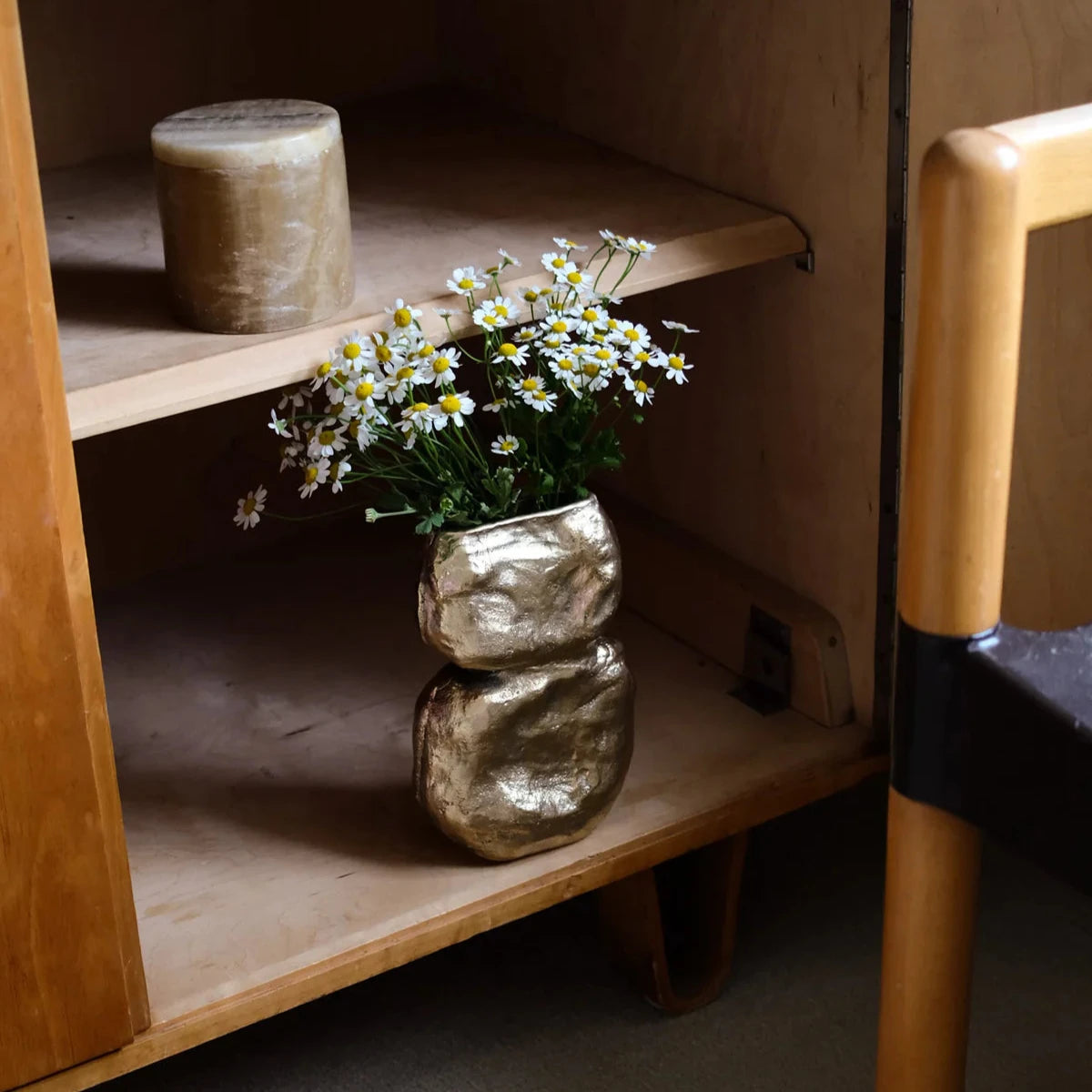 Born from the alchemy of molten metals, each OLIO Vase blends natural bronze, white bronze, and brass in forms that feel both ancient and otherworldly. Sculpted first by hand in clay or wax, every curve, fold, and crevice is preserved through direct casting, revealing a surface that celebrates imperfection and depth.