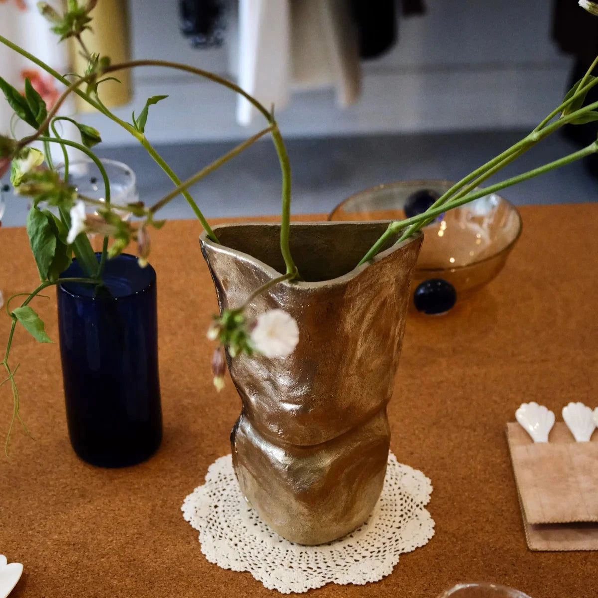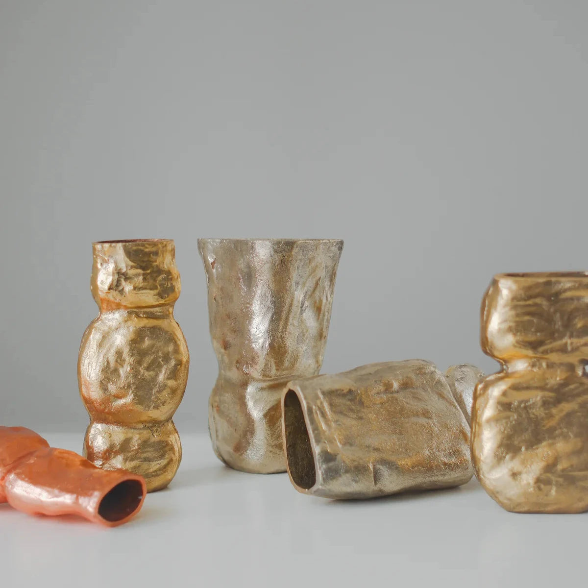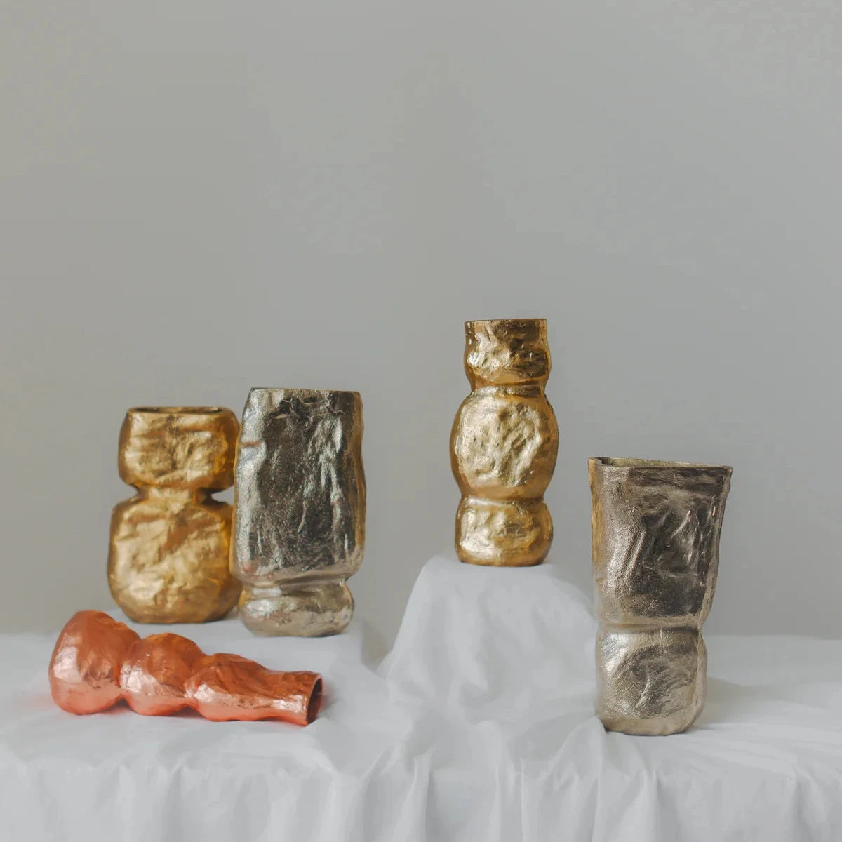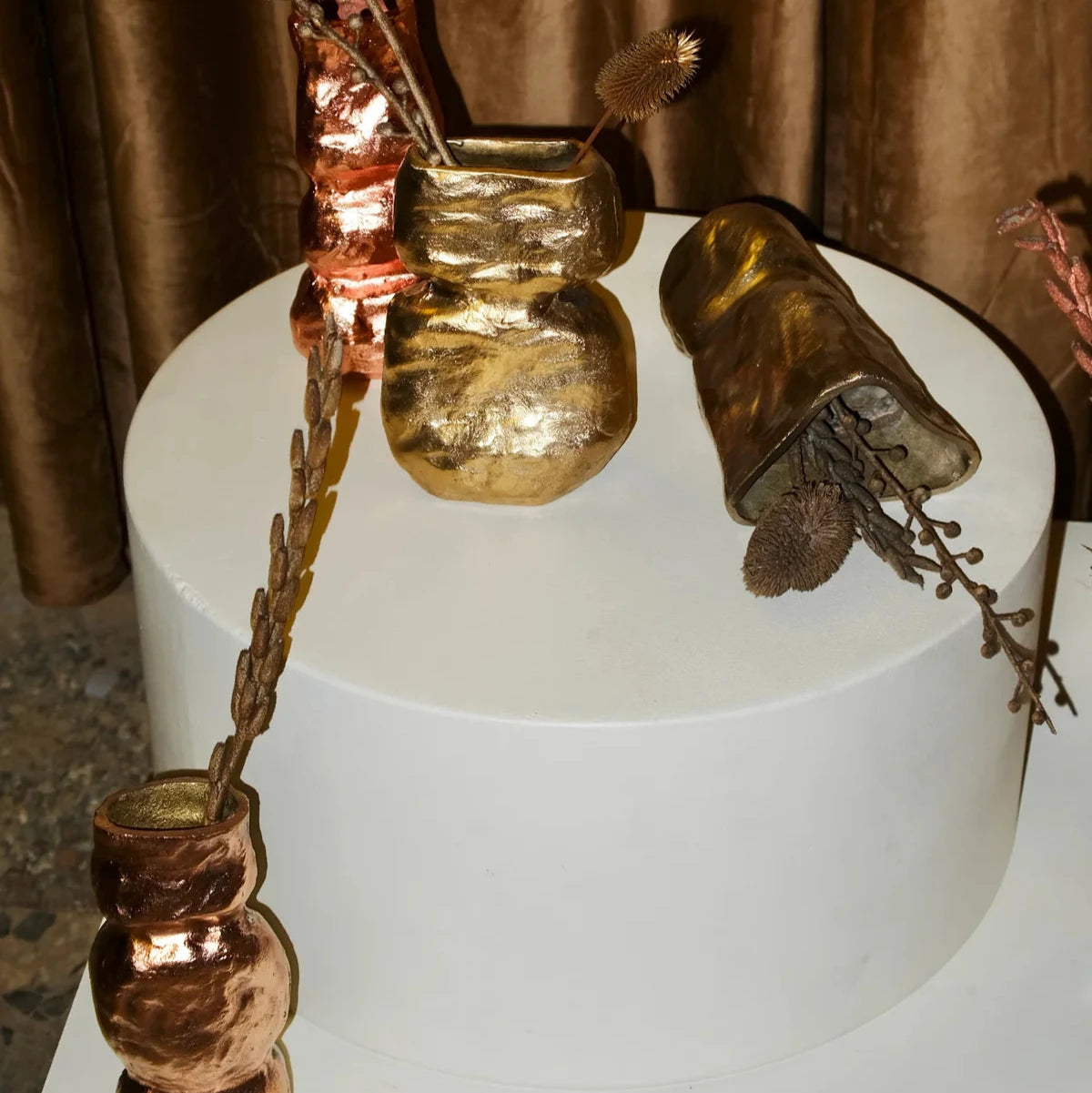 Born from the alchemy of molten metals, each OLIO Vase blends natural bronze, white bronze, and brass in forms that feel both ancient and otherworldly. Sculpted first by hand in clay or wax, every curve, fold, and crevice is preserved through direct casting, revealing a surface that celebrates imperfection and depth.