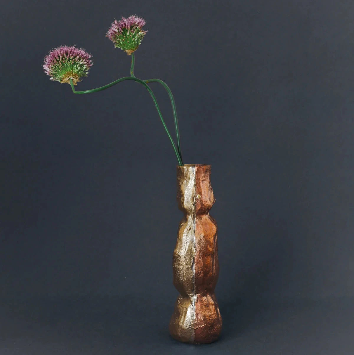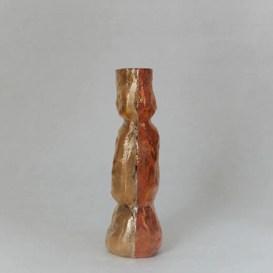 Born from the alchemy of molten metals, each OLIO Vase blends natural bronze, white bronze, and brass in forms that feel both ancient and otherworldly. Sculpted first by hand in clay or wax, every curve, fold, and crevice is preserved through direct casting, revealing a surface that celebrates imperfection and depth.