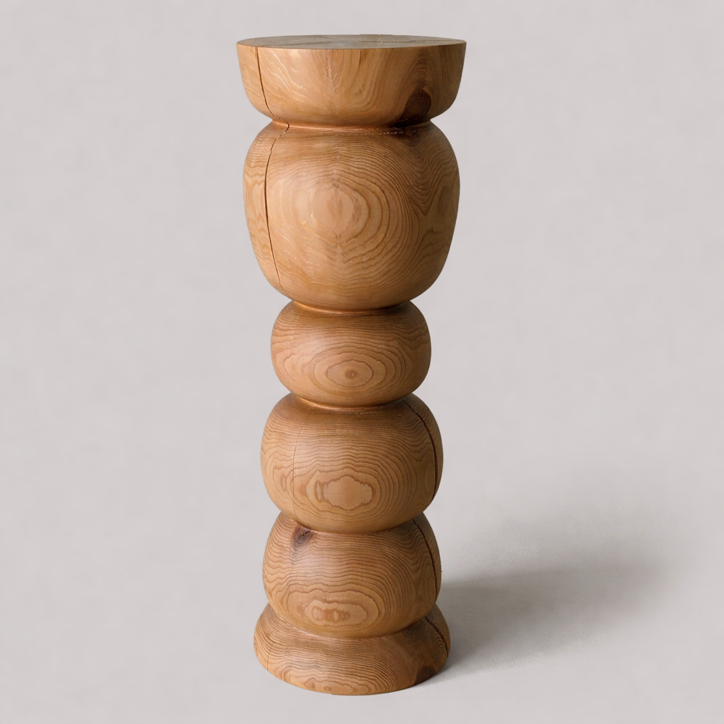 Handcrafted from Western Red Cedar by Studio Julien Peltier, this sculptural pedestal's balanced form is turned on a traditional lathe and finished with a soft matte sheen using a natural blend of vegetal oils and wax. Designed to stand alone or serve as a base for objects of reverence.