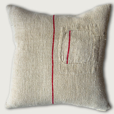 These pillows are made from antique linen grain sacks sourced from Hungary, each one carefully cut and sewn in-house. Originally used for agricultural storage, the fabric is durable, textured, and softened by time. Signs of wear such as mending or faint stains are part of the textile’s history and character. No two are exactly alike.