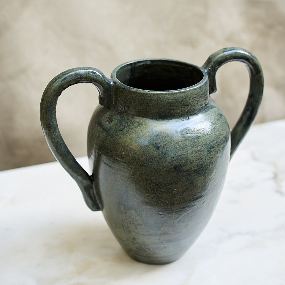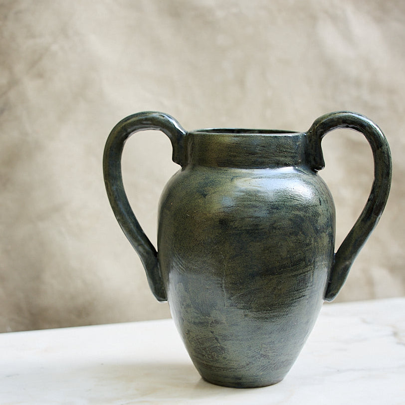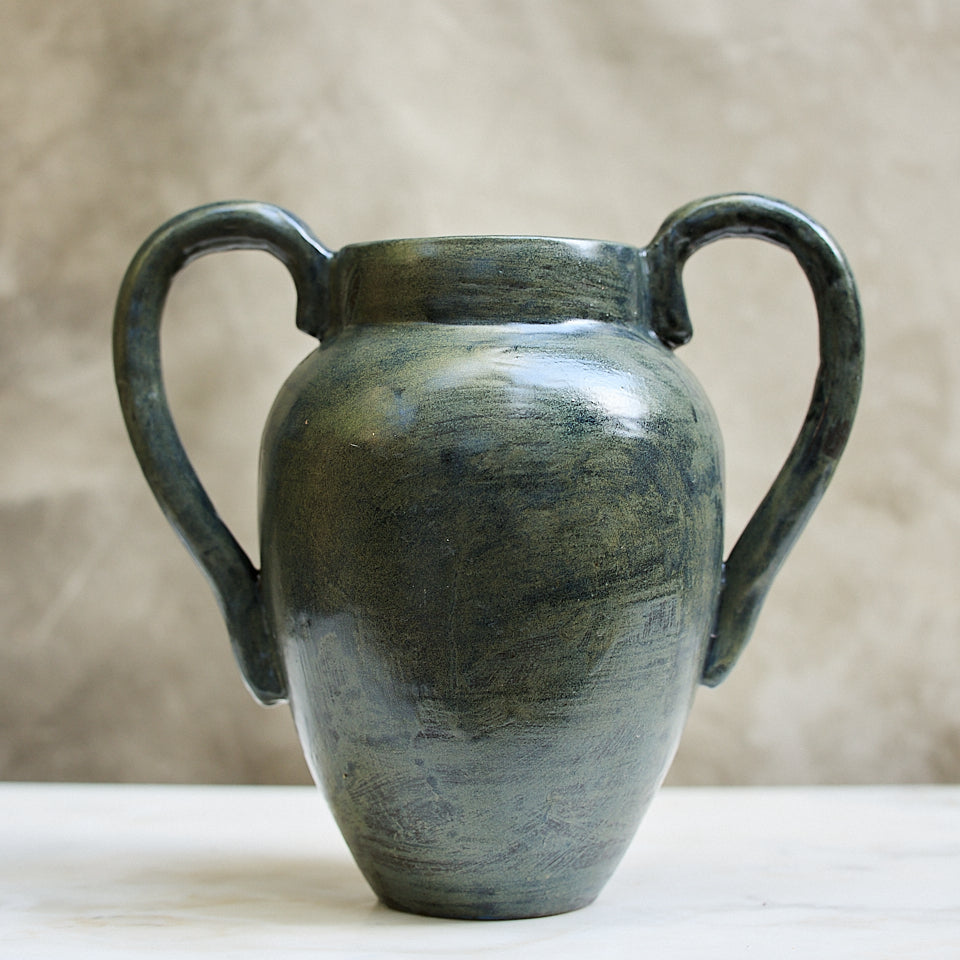 With its sweeping, exaggerated handles and generous form, the Lake Trophy commands attention from every angle. Inspired by classical urns, it’s a sculptural vessel with a sense of strength and celebration. Finished in Katherine’s signature lake glaze, no two are exactly alike. Watertight for floral use, or striking on its own.