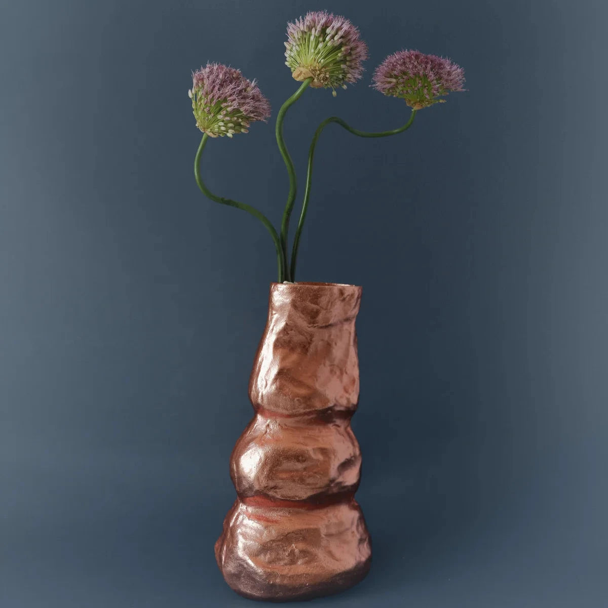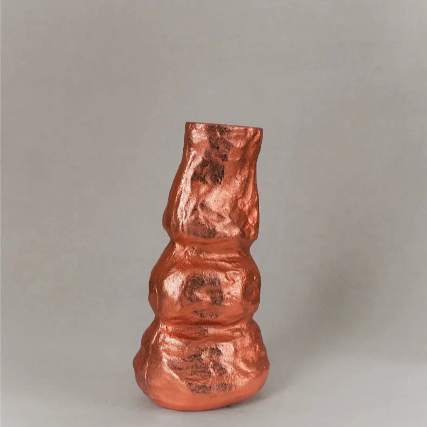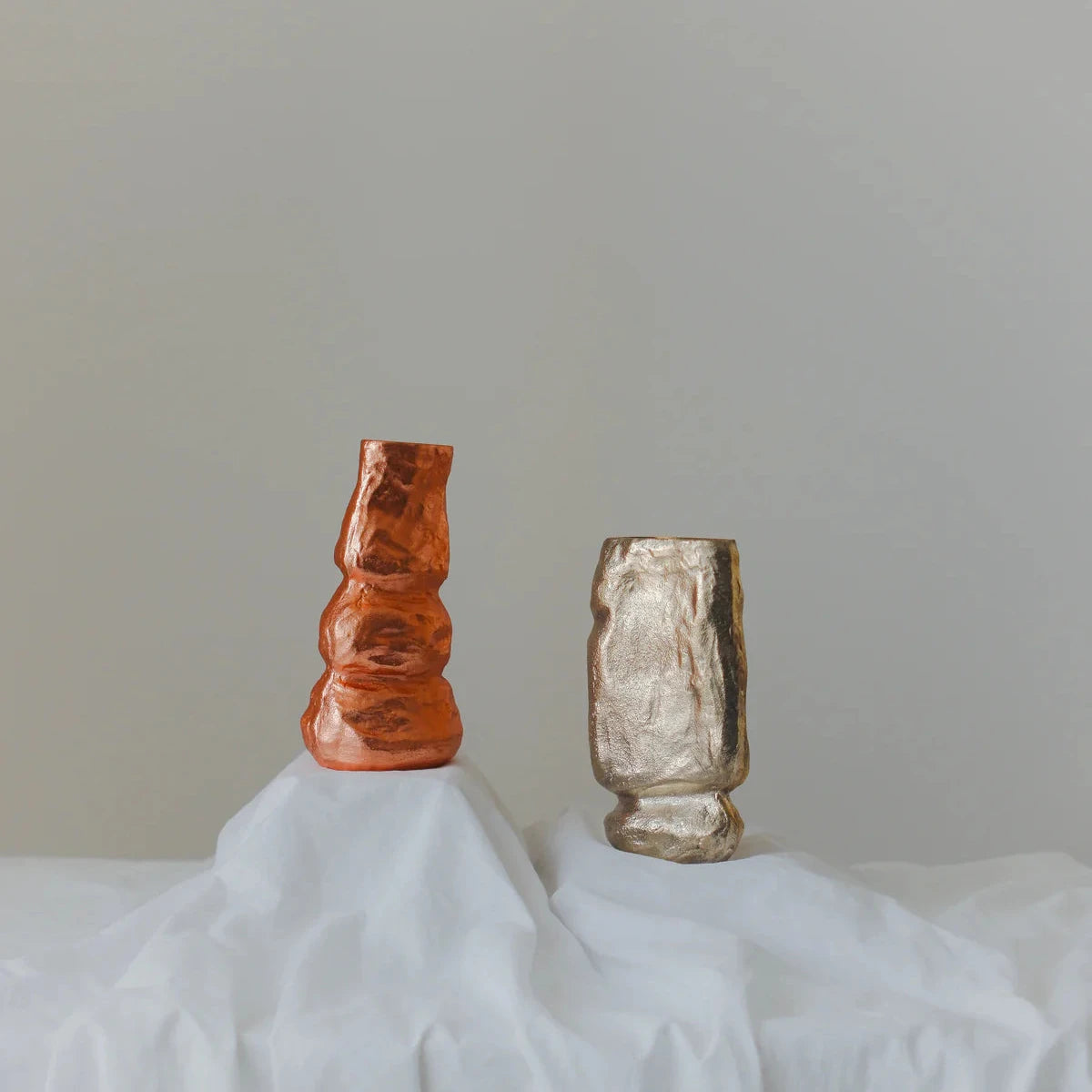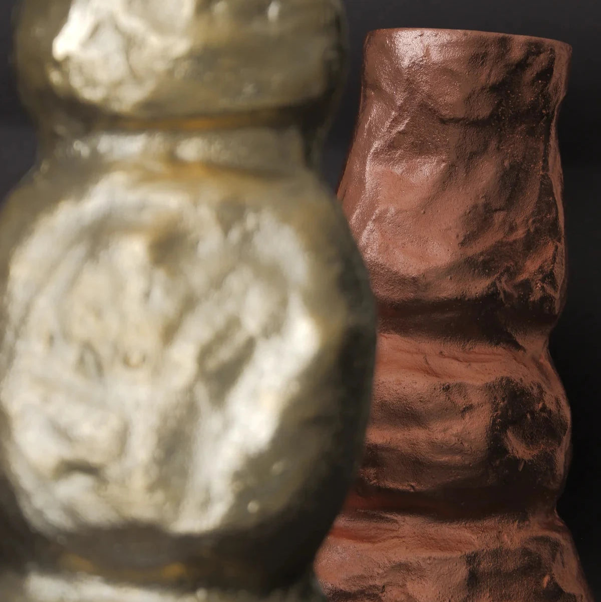 Born from the alchemy of molten metals, each OLIO Vase blends natural bronze, white bronze, and brass in forms that feel both ancient and otherworldly. Sculpted first by hand in clay or wax, every curve, fold, and crevice is preserved through direct casting, revealing a surface that celebrates imperfection and depth.