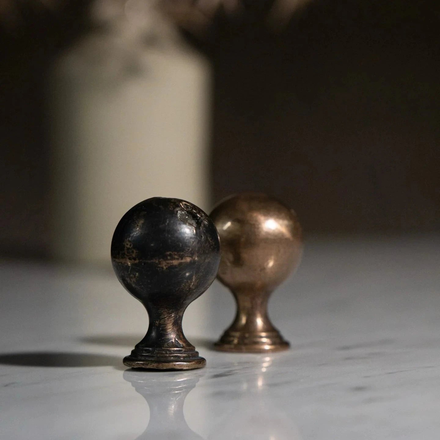 The Rotund Pull features a perfect sphere atop a beehive style rosette cast in one piece.