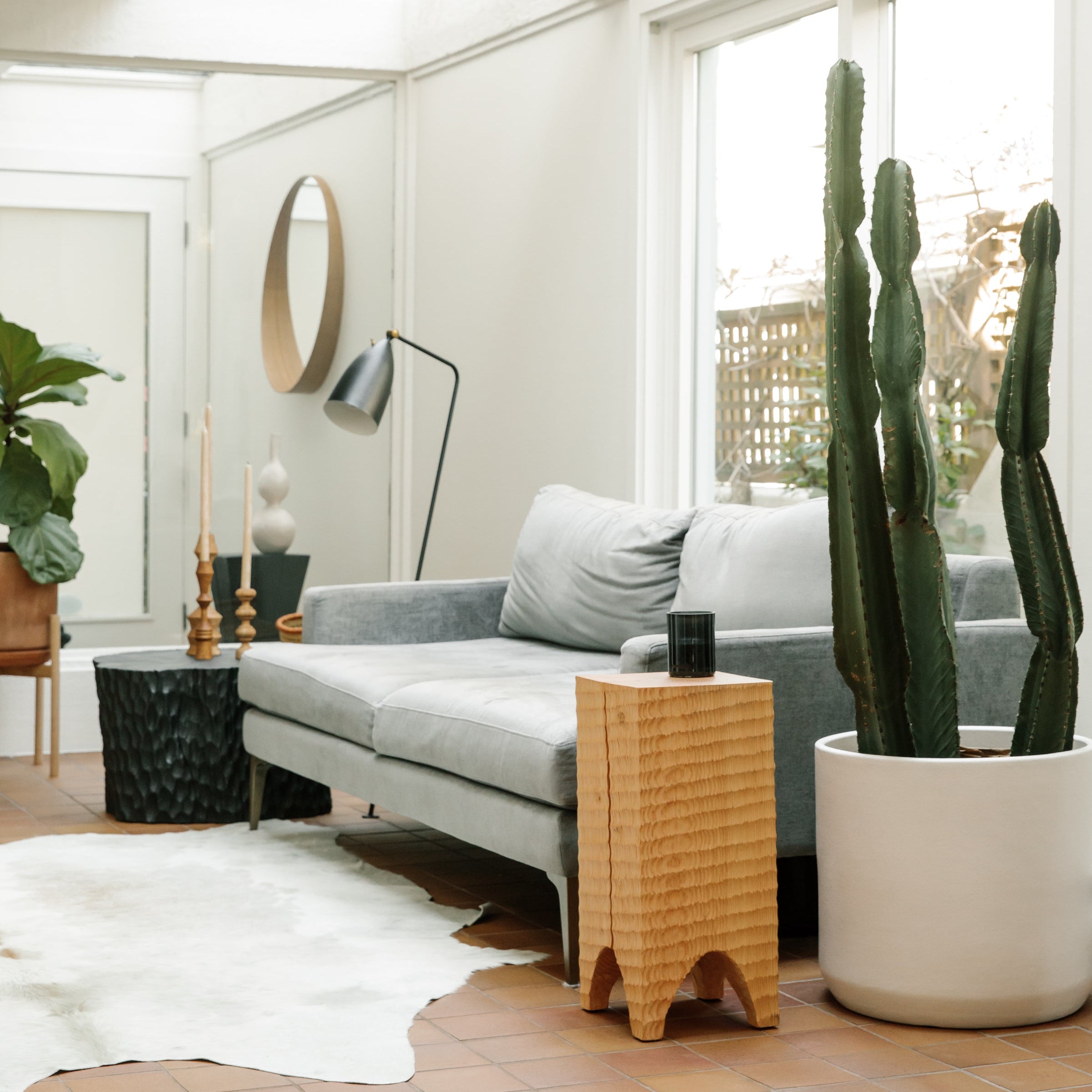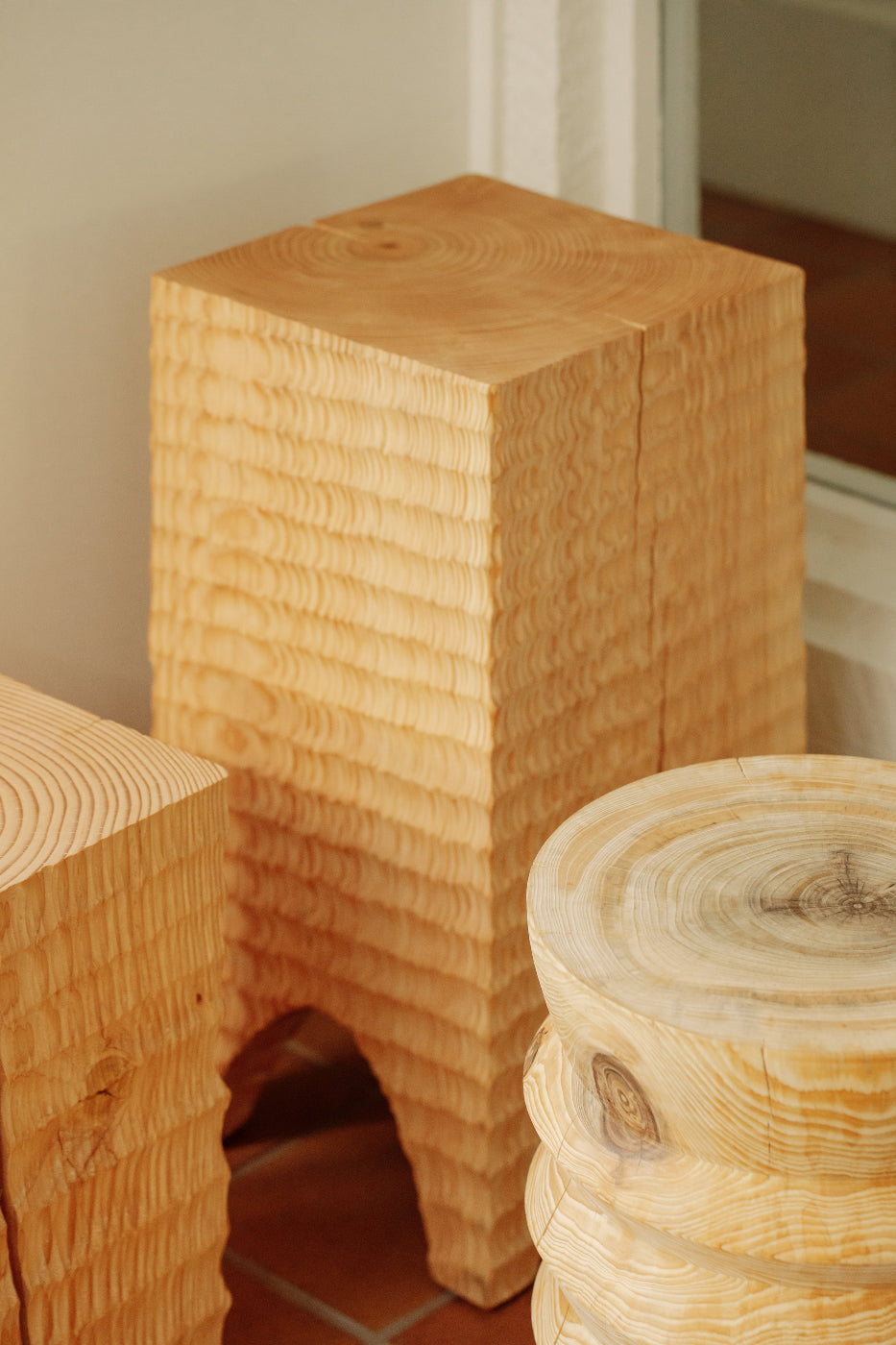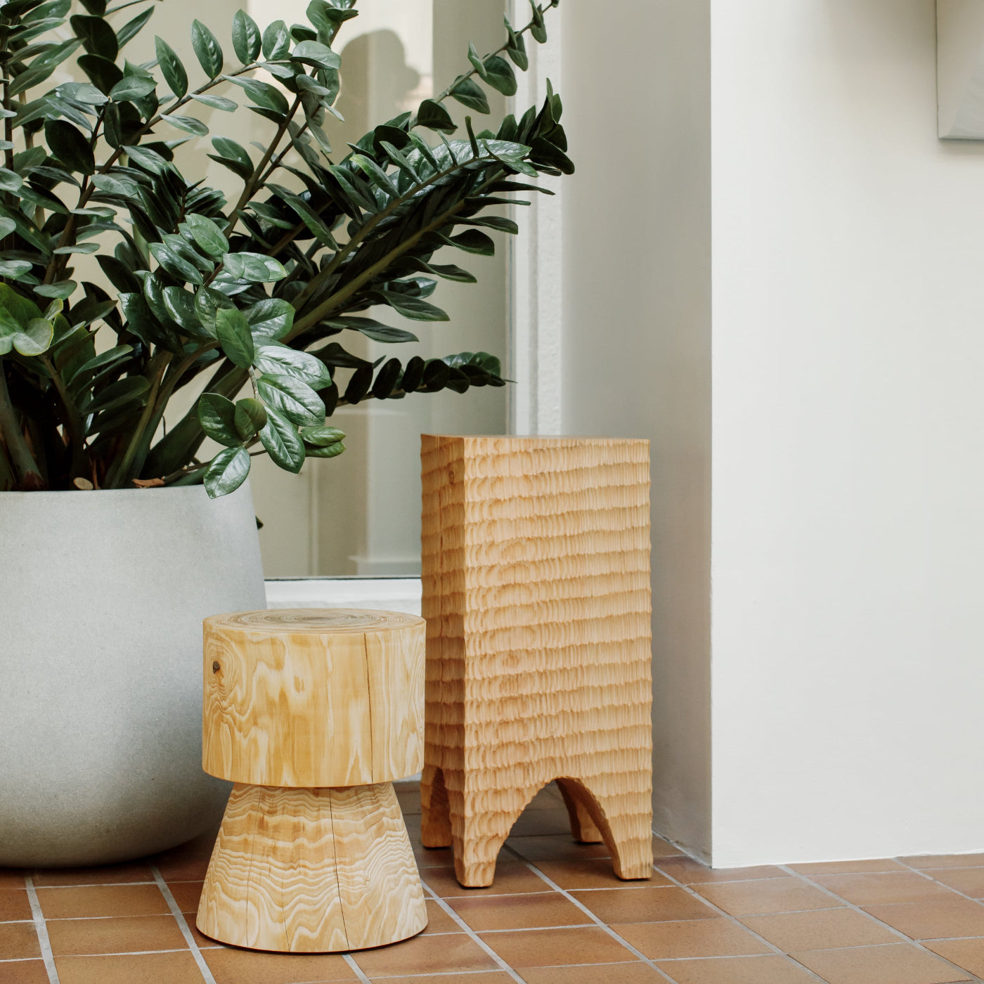 Handcrafted from Douglas Fir by Studio Julien Peltier, Shape No.12 is a sculptural side table made with quiet precision and care. Each piece is shaped in Julien Peltier’s Montreal studio and finished with a natural blend of vegetal oil and wax — a matte, child-safe finish that enhances the wood’s organic grain without obscuring its character.