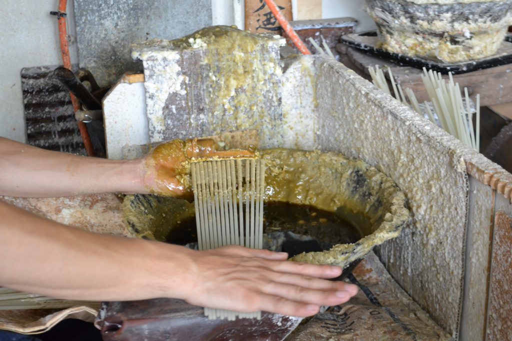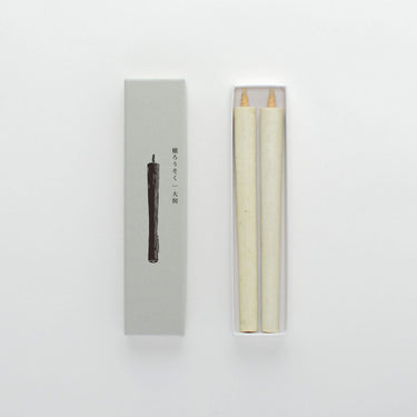 Handcrafted in Takashima, Japan by Daikō, this traditional warosoku candle is made from 100% plant-based sumac (haze tree) wax. Each candle is built slowly by hand, layer upon layer, around a washi paper core using methods preserved for over a century.